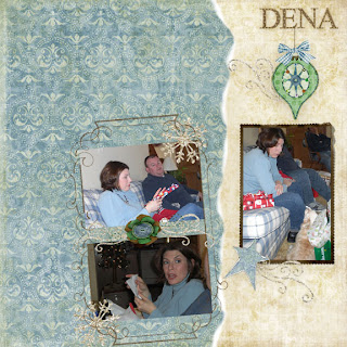 This was a fun layout! Template from Jen Caputo. Gingerbread House assembled with a kit from ScrapGirls. Striped paper is from Two Peas in a Bucket. Craft paper background was a freebie from the Father's Day collection from RAKScraps. Wraparound ribbon, polka dot paper, and pink flower paper was a freebie called Touch of Pink from http://creativedelusionzscraps.blogspot.com